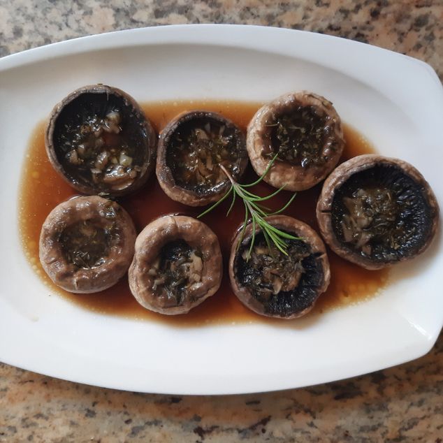 Se limpian los champiñones y se les quita el pie. Wn una sarten a pone dos cucharadas de aceite virgen extra y se colocan los champiñones dentro de le pone ajo picado un poco de sal, aceite y orégano, se tapa y se deja como 15 minutos , hay que vigilar que no se quemen y añadir un poco de agua si es necesario y tb vino blanco. Después de se tiempo aproximadamente, ya están listos . Os lo aconsejo.