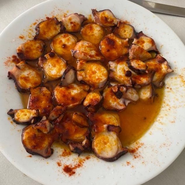 - Cortar las patas del pulpo en trozos de 1 cm de grosor y la cabeza en trozos pequeños.