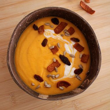 Esta crema de calabaza aparte de estar super rica , tiene propiedades antiinflamatorias gracias a la mezcla de ingredientes y especias.