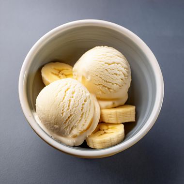 Para servir, simplemente saca el helado del congelador y disfruta del refrescante sabor del plátano con el aroma y la dulzura adicional de los ingredientes opcionales si se decidieron agregar.