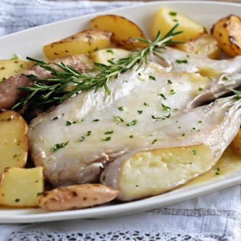 Finalmente, retira del horno, elimina la raspa y sirve la lubina con las patatas como guarnición. Si necesario, puedes darle un último toque de horneado a las patatas para dorarlas un poco más.