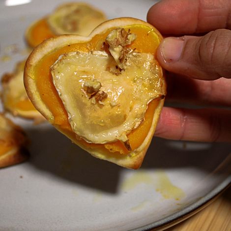 Una vez fuera del horno ponemos un poco de miel y unas nueces picaditas.