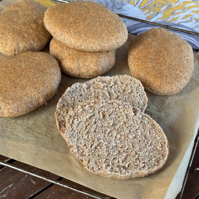 5️⃣Con la ayuda de un rodillo aplastamos las bolitas dándole forma de mollete y colocamos en una bandeja de horno dejando un poco de separación entre ellos. Tapamos y volvemos a dejar fermentar una hora.
