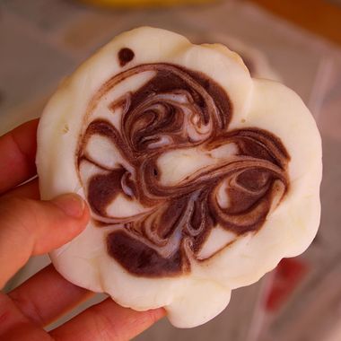 Colocamos unas rodajas de platano haciendo un círculo en un papel de horno