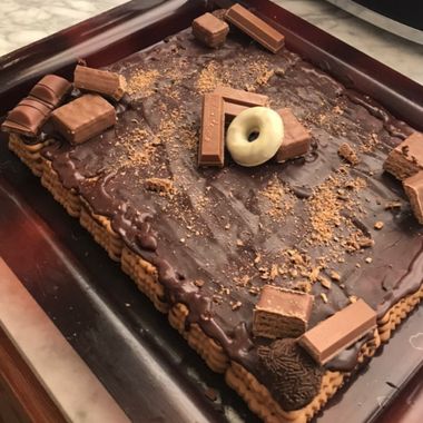 Típica tarta de galletas y chocolate. Un postre ideal para cualquier evento. ¡No falla!