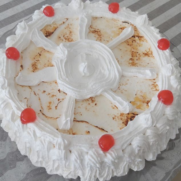 Forram la tortada de merenga amb un ganivet i posam sucre damunt i la cremam.