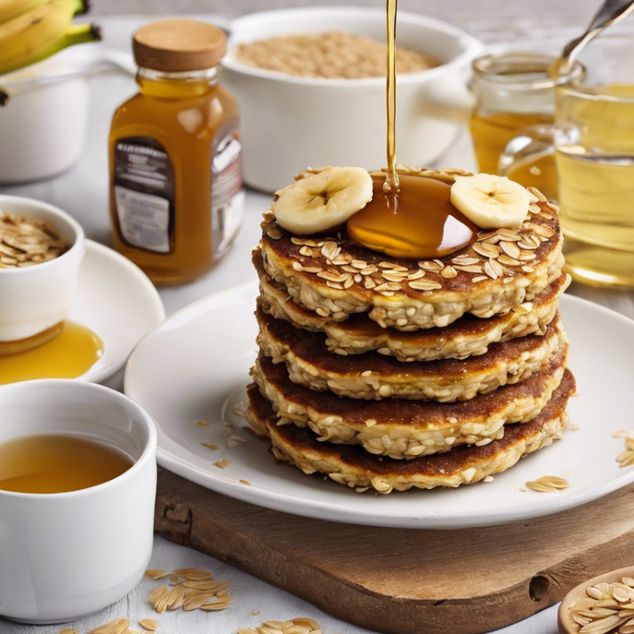Servimos las tortitas calientes acompañadas de rodajas de plátano y sirope de agave al gusto. También se pueden guardar y recalentar antes de servir.