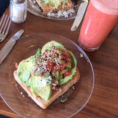 Pude acompañarse con café o batido de frutas, en este caso, de sandía.